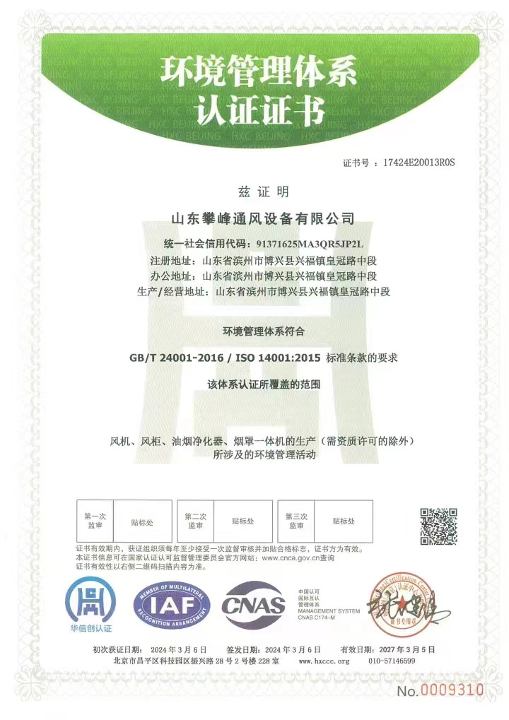 • 環境管理體系認證證書
