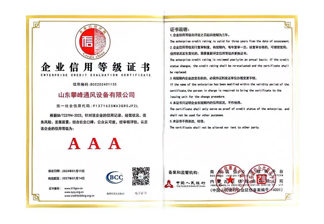 • AAA級企業等級證書